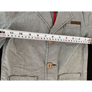 Adorable Sean John 100% cotton chambray blue striped blazer, in boys' size 5. Your little man will feel stylish and comfy at the same time in this awesome blazer! Chest pocket, 2 hip pockets. Contrating navy stitching accents. 3-button front closure. Leather SEANJOHN logo patch. Notch lapel. No buttons on cuffs to get in the way of your boy's fun and play! Unlined. Lightweight; great for any season! Layer it up with a button down and sweater vest for fall and winter, or wear with a simple T-shirt for summer and spring. SEANJOHN. Measurements in photos. EUC: Excellent, pre-owned condition!