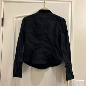 Ralph Lauren woman's black denim jacket with velvet at the collar and sparkly buttons.