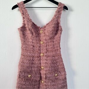 BALMAIN Strapped Short Dress Nude Tweed Buttons