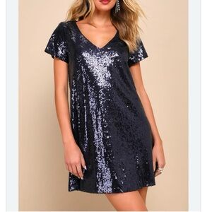 Shine in this elegant navy sequin dress, perfect for any special occasion.