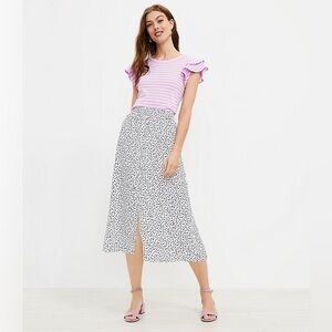 LOFT White and Black Floral Button Pull On Midi Skirt Size Medium NWT BRAND NEW