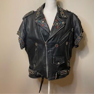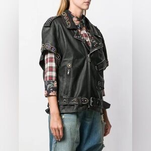 R13 Repurposed Studded Embellished Biker Short Sleeve Leather Jacket RARE