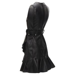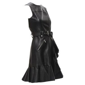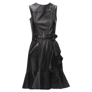 Delivery Duty Paid included – ALEXANDER MCQUEEN 2022 black leather biker belted ruffle trim dress IT38 XSReference: AAWC/A00036Brand: Alexander McQueenDesigner: Sarah BurtonMaterial: LeatherColor: Black, SilverPattern: SolidClosure: ZipLining: Fully LinedExtra Details: Silver-tone hardware. Buckle belt at waist. Ruffle trim . Flutter skirt.Made in: ItalyCONDITION:Condition: Excellent, this item was pre-owned and is in excellent condition. SIZINGDesigner size: IT38Size reference: US0 / UK6 / IT38 / FR34 / XXS-XSMEASUREMENTS: Shoulder to shoulder: 32cm / 12.5"Chest: 38cm / 14.8"Waist: 34cm / 13.3"Hip: 38cm / 14.8"Length: 93cm / 36.3"Measurments: length: 930 mm