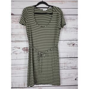 Calvin Klein Midi Dress 14 Womens Green White Striped Short Sleeve Stretch