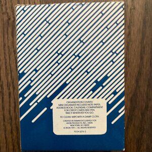 Vintage Avon from 1991 "This & That" Compact Organizer in dark blue. It's a small, portable case designed for organizing notes, ID, address and phone numbers. Magnetic closure and cute polka dot design on the note pad and address booklet. Brand new and unused, removed from original packaging for pictures. Measures 3" X 4" folded and 3" X 7 1/2" open. Excellent unused condition.