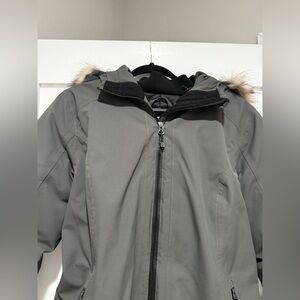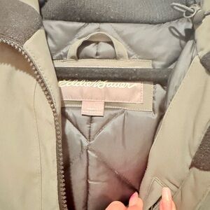 This adorable coat from Eddie Bauer is in good used condition. I’m not sure why the color is picturing weird, but it is more of a forest green.