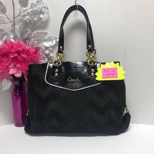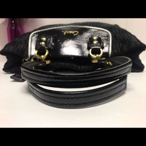 Coach Ashley 20050 Black Gathered Satin Purse Handbag & Wristlet SET
