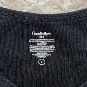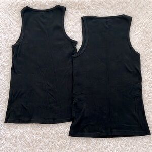 2 classic all black muscle shirts from Goodfellow & CO. They have a ribbed texture and have some stretch to them.