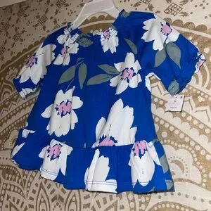 NWT “CARTER’S” GIRLS CUTE BLUE & WHITE FLORAL TOP, RUFFLE AT BOTTOM.
