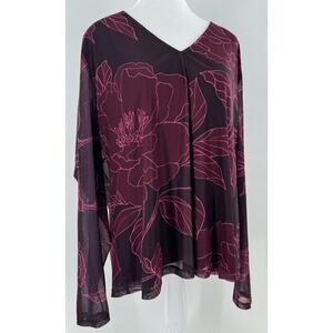 Les Serein Shirt Top Women’s Size XL Mesh Floral Y2K Long Sleeve Graphic 90’s
