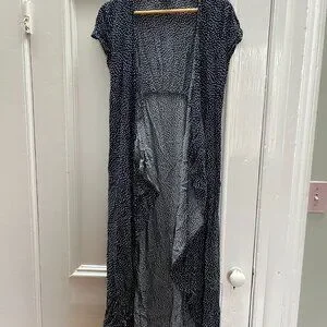This is the Nom Maternity Delilah wrap dress, in navy blue dots. Size Medium. Fit a bit small compared to other maternity mediums I would say, so would fit a pre-preg size small best.