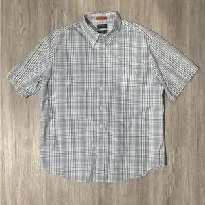XL men’s Dockers shirt. Blue and white plaid pattern. Short sleeve button up.