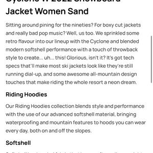 gently used dope snow women’s cyclone shell size medium color sand. only worn out twice. small stain on back, hood covers it if it’s down. no other visible flaws. originally $169, on sale for $118. no trades.