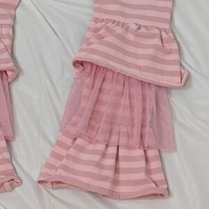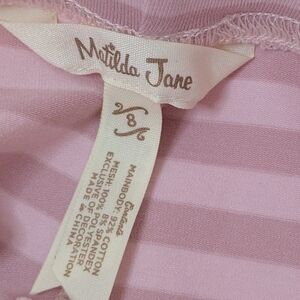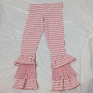 In excellent pre owned condition Girls Matilda Jane Pink Ruffle Pants in a size 8. These Matilda Jane Ruffle flare paints show very light signs of wear if any at all. Super cute pink striped Matilda Jane pants with ruffle bottoms with tulle.