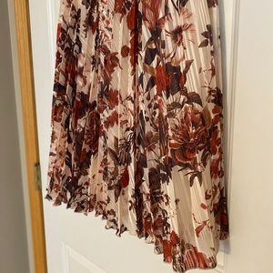 Reposhing this item I purchased from @baileygrz. Loved it but never reach for it anymore. Adorable pleated midi skirt with reds and browns and thin silver accent pinstripe. Elastic waist. In excellent condition. Open to offers!