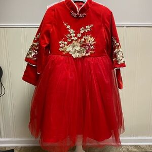 Elegant Red Floral Kids Costume