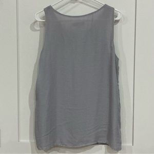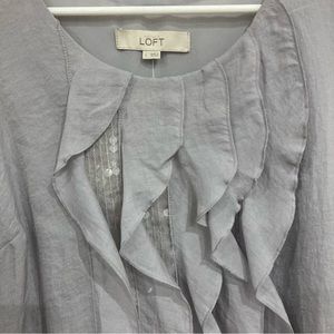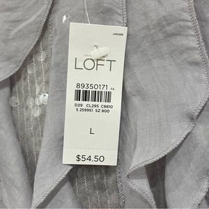 Never worn with tags! LOFT blouse, Size Large. Gray with sequins hidden behind ruffle detail. Sleeveless with lining.