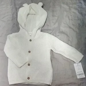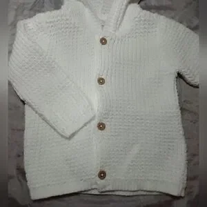 Carter's 100% Cotton Knitted White Hooded Jacket Sweater Cardigan Unisex
