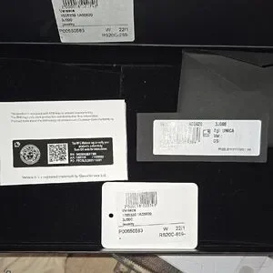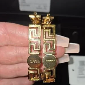 Elegant Versace earrings. Intricate gold design. Iconic style.