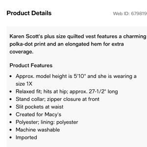 Karen Scott plus size Polka Dot Quilted Vest 2X