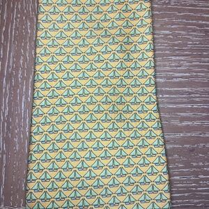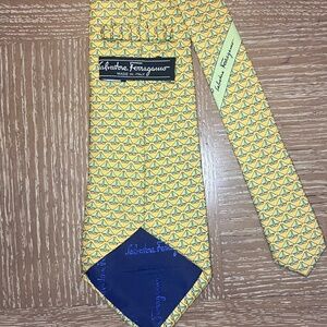 Salvatore Ferragamo Yellow 100% Silk Tie with Light Blue Sailboats.