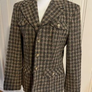 PENDLETON Womens Vintage Wool Boucle Knit Plaid 4 Button Blazer Size 6