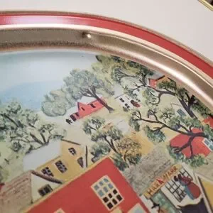Vintage Sunshine Biscuits Tin Tray Plate Shopping on Main Street Melvin Bolstad