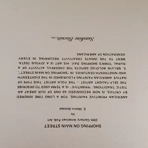 This vintage Sunshine Biscuits tin tray plate features a charming scene titled "Shopping on Main Street" by artist Melvin Bolstad. The tray is adorned with the iconic red branding of Guildcraft and was manufactured in the United States. Perfect for collectors of advertising memorabilia, this nostalgic piece captures a glimpse of a bygone era with its quaint design and historical significance.