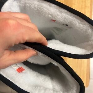Luxurious black mittens with genuine rabbit fur detail. Never worn! Brand New without original box. Size L. Handcrafted by Manitobah