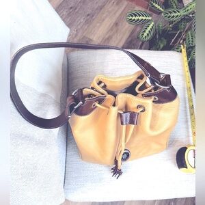 🛍️Vintage Dooney & Bourke yellow/brown leather bucket shoulder Bag. (14X12X6)