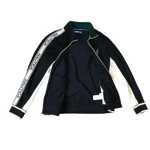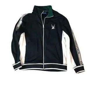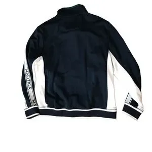 Mens Nautica jacket LG full zip Blue Sail logo sleeves cotton navy blue white