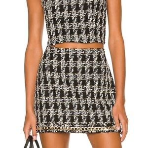 This striking mini skirt features a bold houndstooth pattern in black and gold, creating a sophisticated and vintage look. The A-line silhouette flares gently from the waist, making it a stylish choice for both work and casual occasions. Only worn once indoors, size 2 fits XS/S well 🥰💖