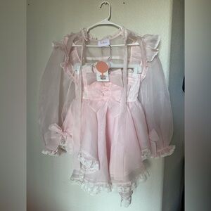 new with tags - selkie “the baby soft cake shop dress”, size s, soft and sheer material, strapless with little shrug you can tie up front, lace detailing on the trim of both the dress and the bolero shrug, corset type top, sadly did not fit me, perfect for valentine’s day!