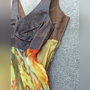 Danier leather and silk multicolor maxi mermaid V-neck dress size 12