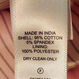 Materials & Care: Shell: 95% cotton & 5% spandex. lining: 100% polyester. Dry clean.