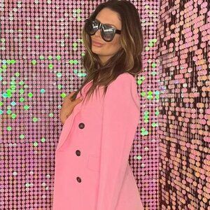 CeCe Double Breasted Twill Blazer in Pink Begonia price tag $129 size 16W NWT