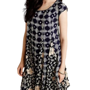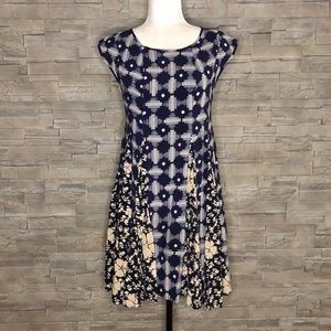 Navy and cream Indiga swing corset back dress by Maeve from Anthropologie.