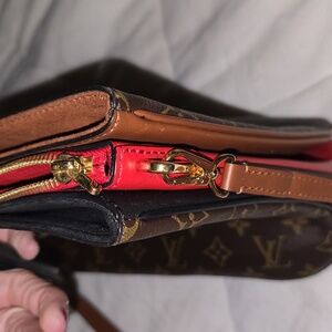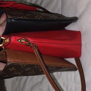 Elegant Louis Vuitton women's bag in brown and red. Perfect for adding a touch of luxury to any outfit.