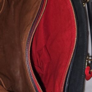 Louis Vuitton Brown and Red Satchel with Iconic Monogram and Gold Accents