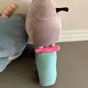 One set of (3) Pusheen Plushes. One 11 inch Classic (horizontal) Pusheen the Cat Squisheen Plush, one 11 inch Narwhal Pusheen, and one 10 inch Pusheen on a Scooter plush. Each of the three Pusheen has a slight stain/marks, as shown in photos. Classic Squisheen Plush has two faint black mark on one side & one on the other; Narwhal Pusheen has one tiny black spot on their back + faint marks on their front & Pusheen on a scooter has a small stain on the scooter, all as shown. Otherwise excellent used condition. Non smoking & no pet home.