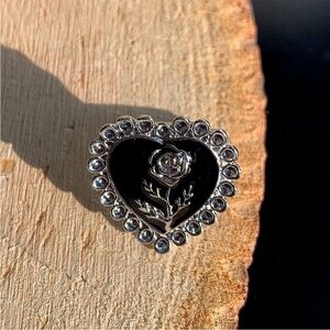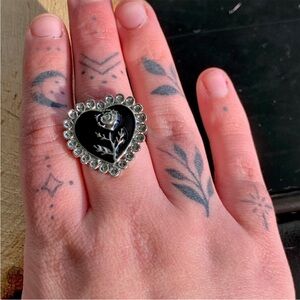 Vintage Styled Heart Shaped Rose Black Grunge Punk Statememt Floral Ring Size 9