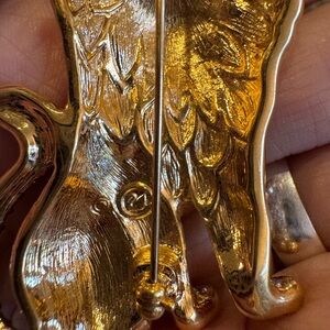 Elegant lion brooch with sparkling gold mane and body. Perfect for adding a touch of luxury to any outfit.