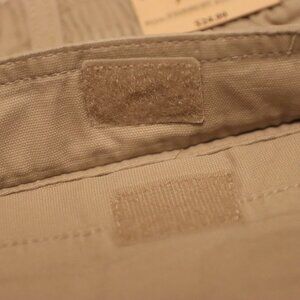 2 back pockets with hook and loop closure. 4 front pockets, two hand pockets and 2 cargo pockets also with hook and loop closure.
