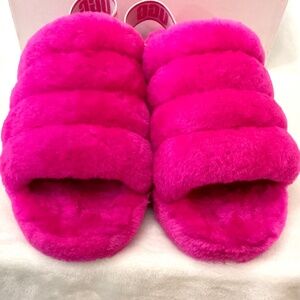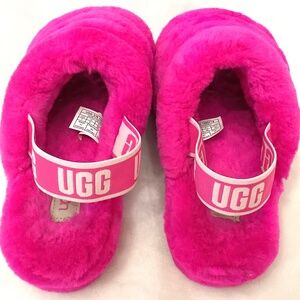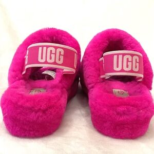 UGG FLUFF YEAH LAMB FUR HOT PINK SLING BACK PEEP TOE SLIPPERS SZ 7