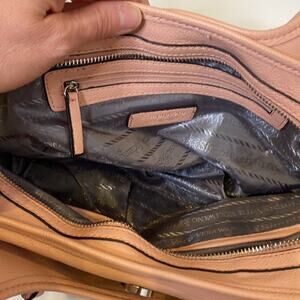 Simply Vera Vera Wang light pink shoulder bag. Middle zipper closure pockets. Two snap pockets on both sides of zipper pocket. External zipper & snap pocket. Additional inner pockets. Many pockets! Lined. Faux buttery leather.
