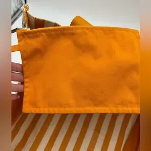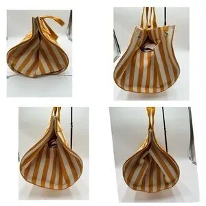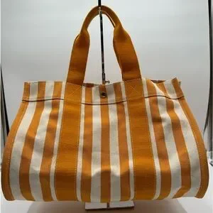Hermes-Authentic- Yellow / White Stripe Cannes Tote Bag with Pouch