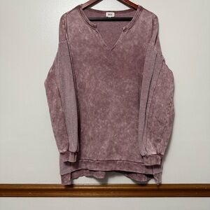 BKE Buckle Multi-Media Raw Hem Distressed Oversized Sweatshirt Women's Small