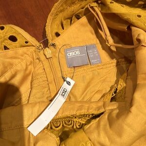 ASOS DESIGN broderie knot front maxi dress in mustard NWT, Size US 2
