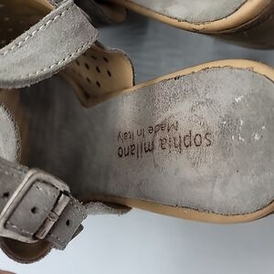 Sophia Milano Grey Perforated Suede Sling Back Sandal Heels Size 8