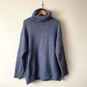 Zara Oversized Knit Turtleneck Sweater Jumper Dusty Blue Size Medium